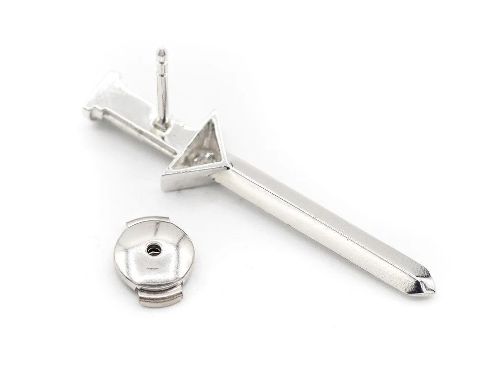 Bijou de col en or blanc 750 millièmes représentant un glaive dont la poignée illustre une colonne et la garde un delta serti d'un diamant taille moderne de 0,10ct F-Vs. Détails de millegrain. Système de tige avec fermoir en or blanc 750 millièmes.