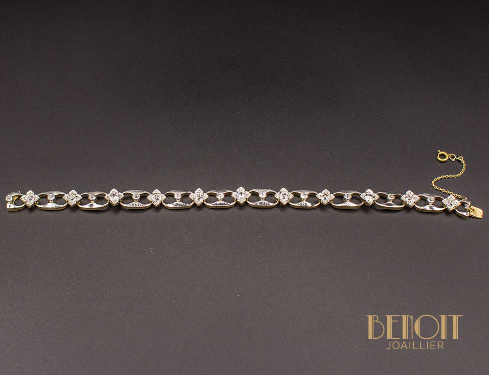 Bracelet 1950 Or Jaune Platine et Diamants
