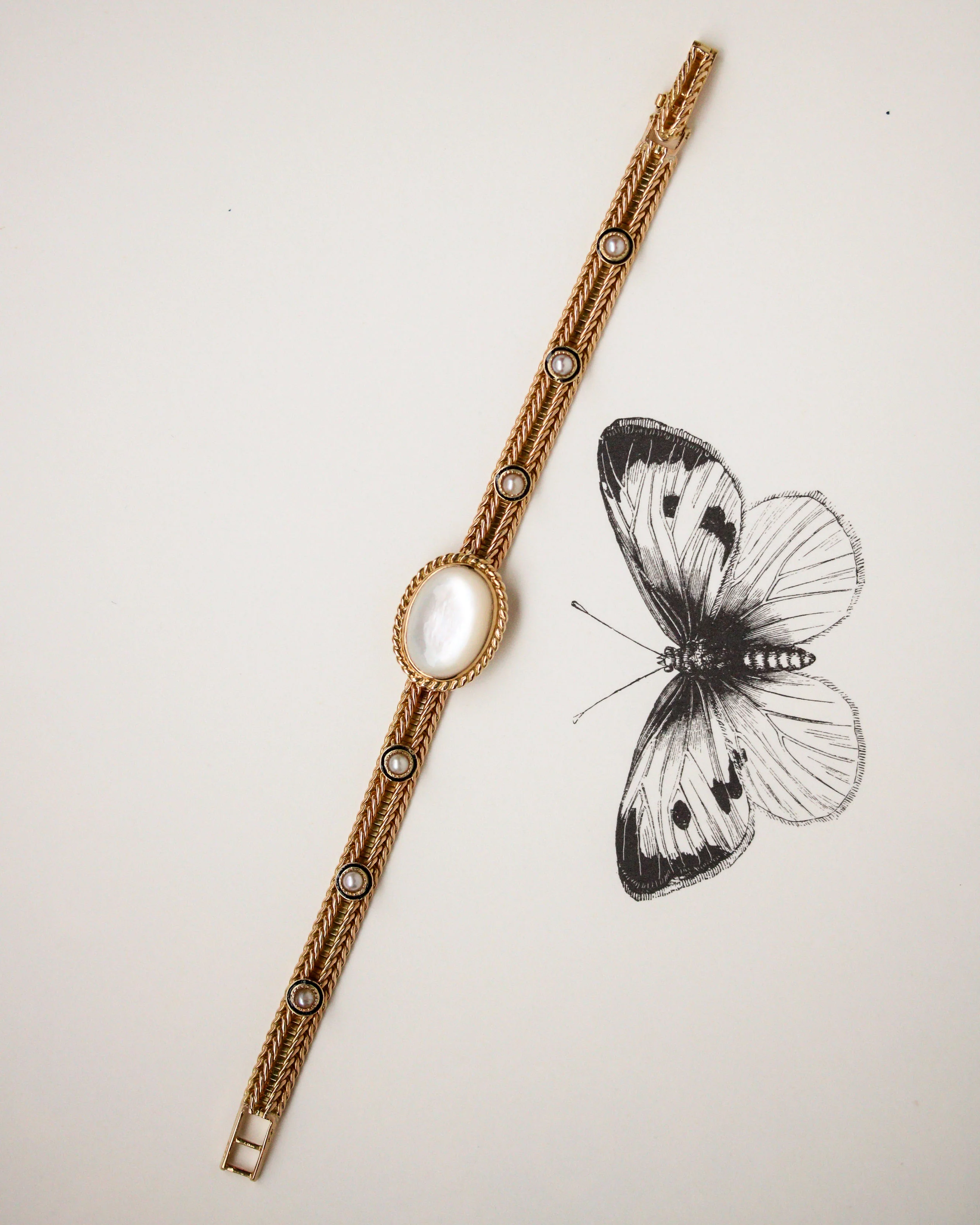 Bracelet Napoléon III Or jaune, Pierre de Lune et perle de fines