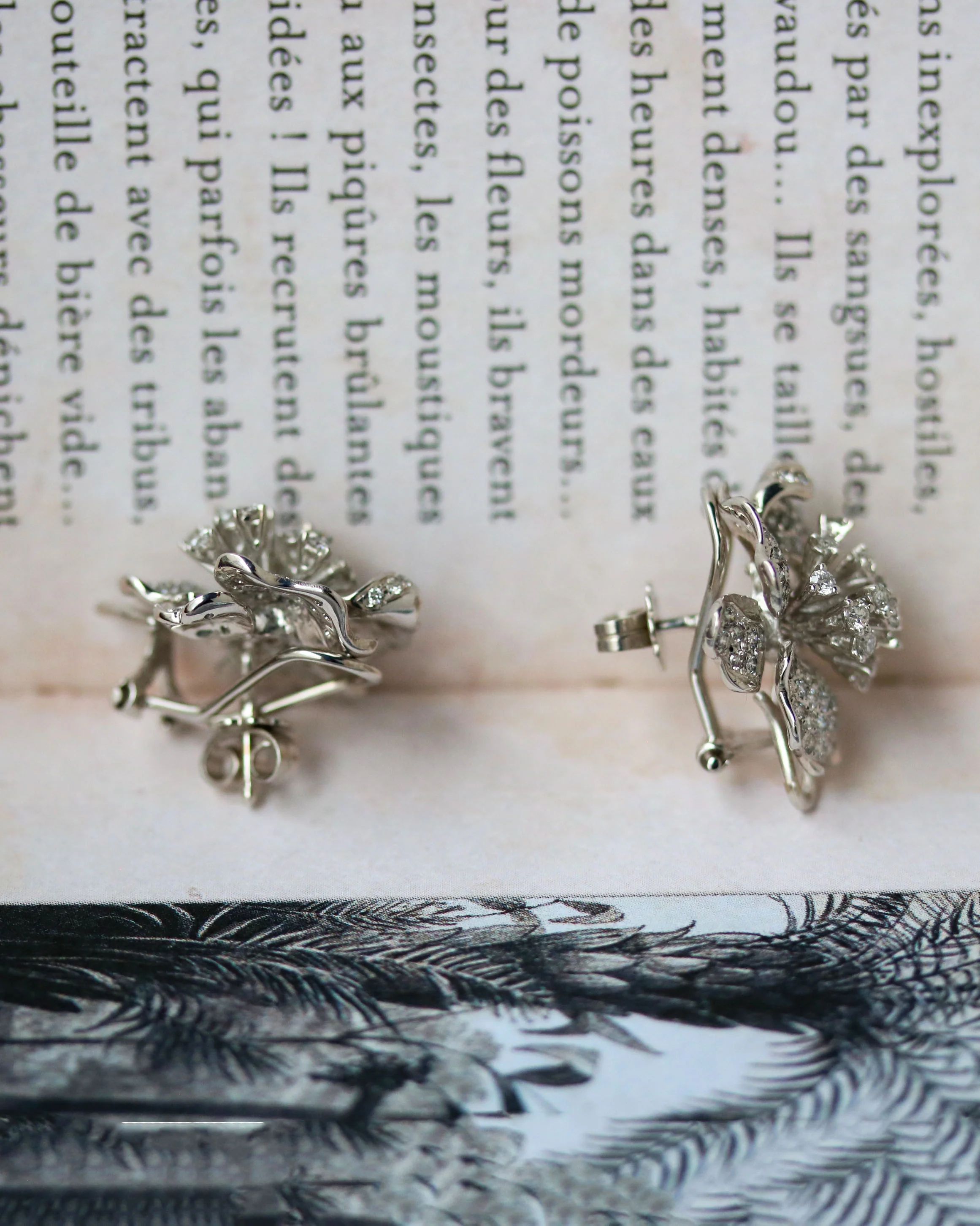 Paire Boucles d'Oreilles Fleurs Or Blanc et Diamants